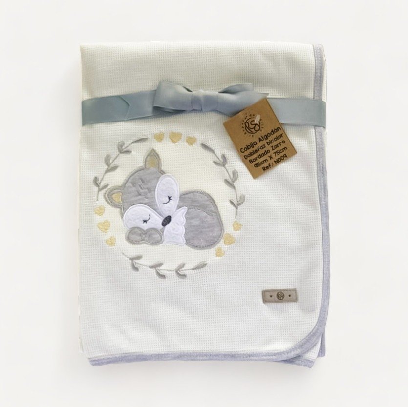 Su textura delicada cuida la piel sensible, mientras el bordado invita a imaginar pequeños recorridos llenos de tranquilidad, perfectos para dormir, arrullar o simplemente descansar en brazos. Es ese abrigo que da paz, que acompaña silenciosamente los sueños y que se convierte en parte de los momentos más dulces del día.