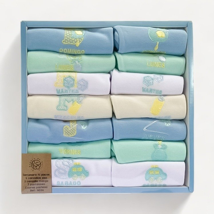 Los bordados permiten identificar cada prenda de forma sencilla, sin pensar demasiado. Solo tomar, cambiar y seguir. La tela es cómoda para el uso diario y está hecha para acompañar muchas mudas, lavadas y momentos normales de casa.
